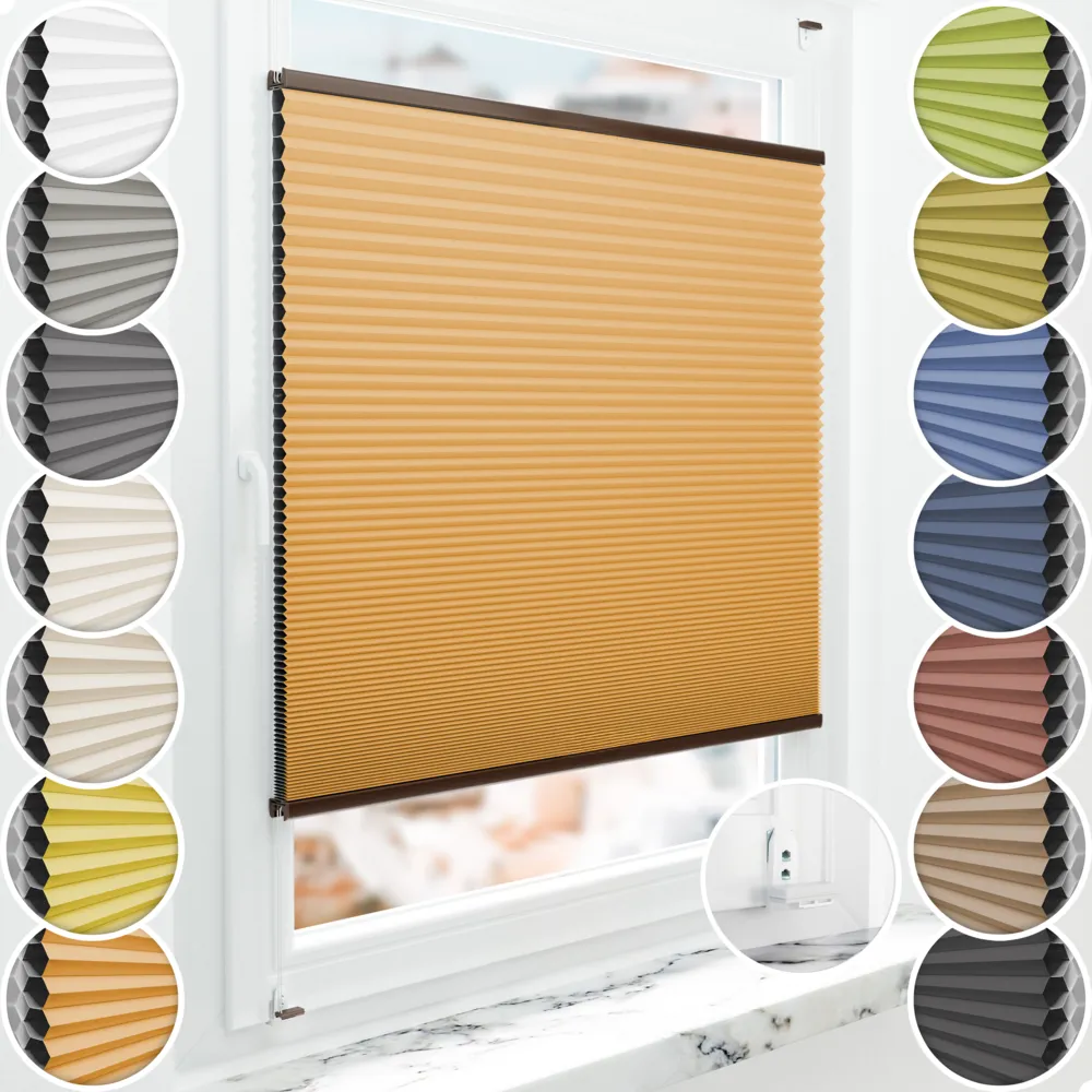 Schuette® Wabenplissee Verdunklungsplissee mit Bohren nach Maß • Blackout x Honey: Citrus Glow (Orange) • Suprafix "Double 2in1" Schraub- & Klemmhalter • Profil: Braun