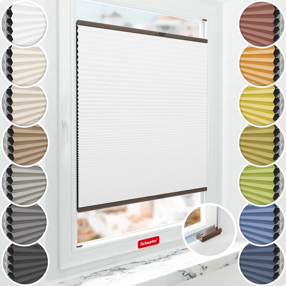 Schuette® Wabenplissee Verdunklungsplissee mit Bohren nach Maß • Blackout x Honey: Moonlight (Weiß) • Suprafix Halterungen "Mit Bohren" • Profil: Walnuss