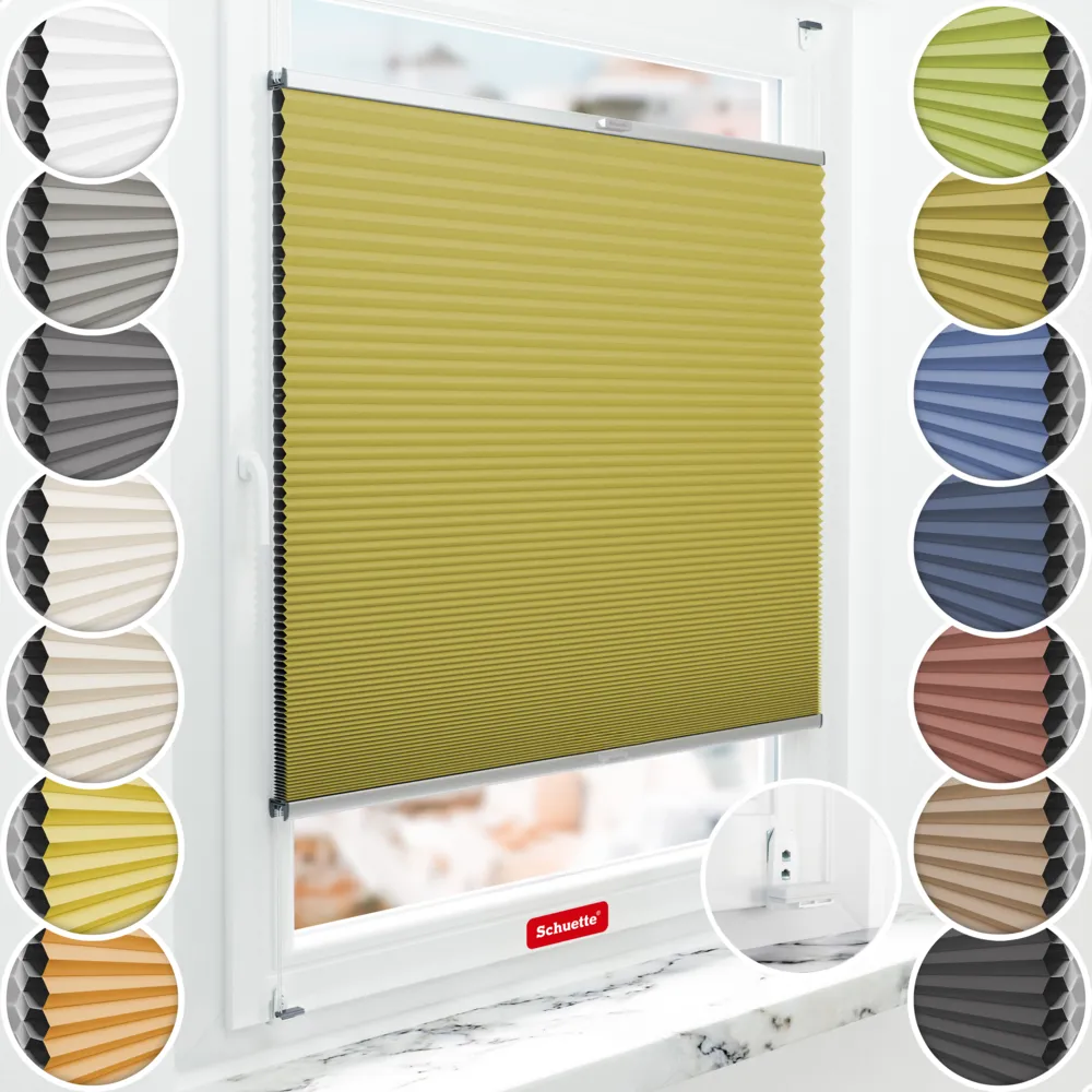 Schuette® Wabenplissee Verdunklungsplissee mit Bohren nach Maß • Blackout x Honey: Olive Branch (Olivgrün) • Suprafix "Double 2in1" Schraub- & Klemmhalter • Profil: Silber