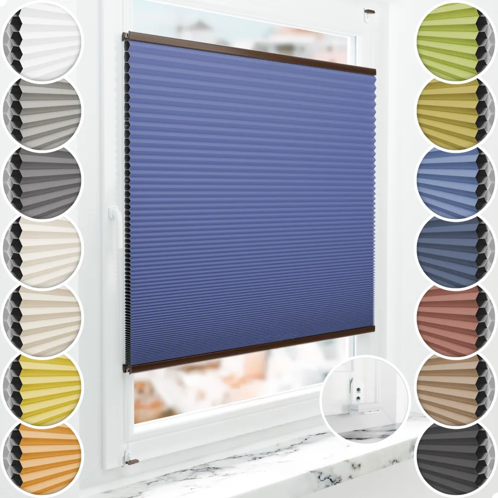 Schuette® Wabenplissee Verdunklungsplissee mit Bohren nach Maß • Blackout x Honey: Skyline (Blau) • Suprafix "Double 2in1" Schraub- & Klemmhalter • Profil: Braun
