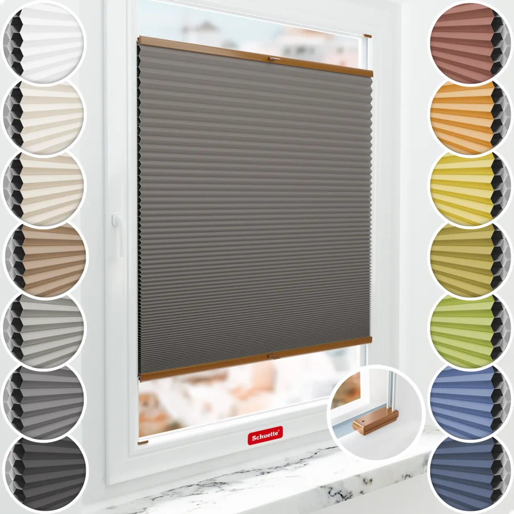 Schuette® Wabenplissee Verdunklungsplissee mit Bohren nach Maß • Blackout x Honey: Swiss Chocolate (Taupe) • Suprafix Halterungen "Mit Bohren" • Profil: Eiche