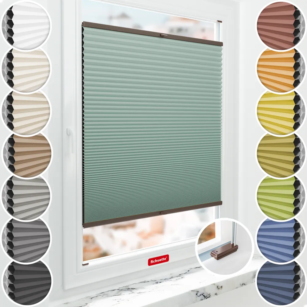 Schuette® Wabenplissee Verdunklungsplissee mit Bohren nach Maß • Blackout x Honey: Wicked Emerald (Blassgrün) • Suprafix Halterungen "Mit Bohren" • Profil: Walnuss