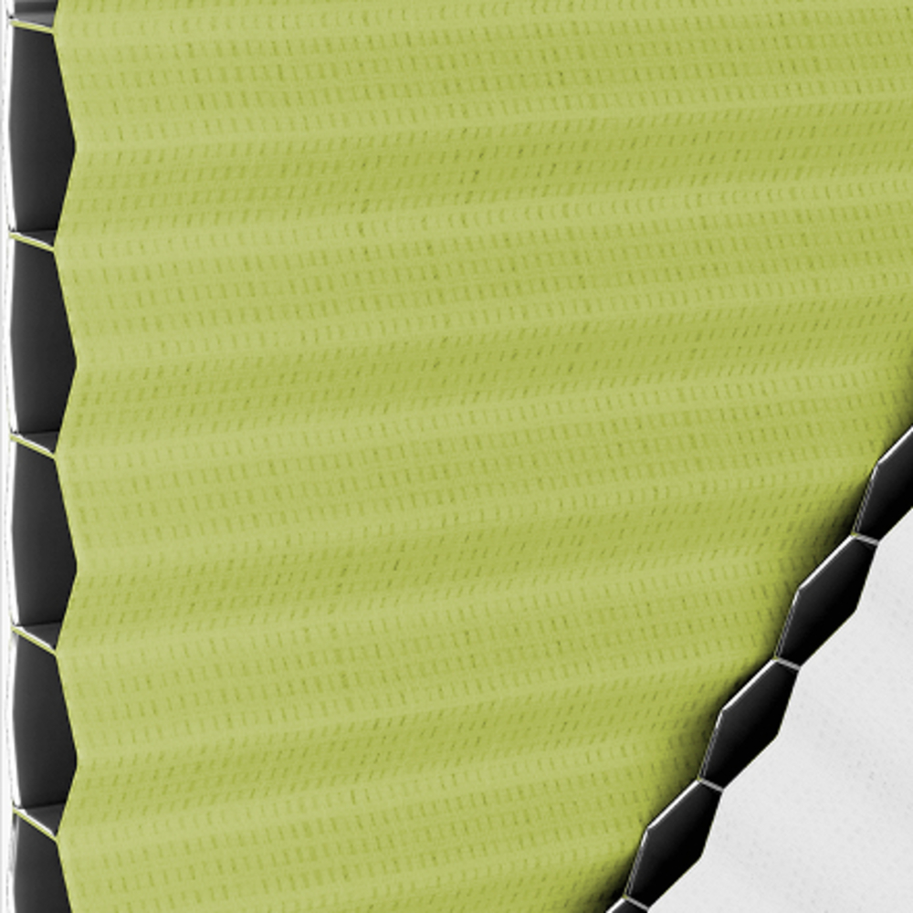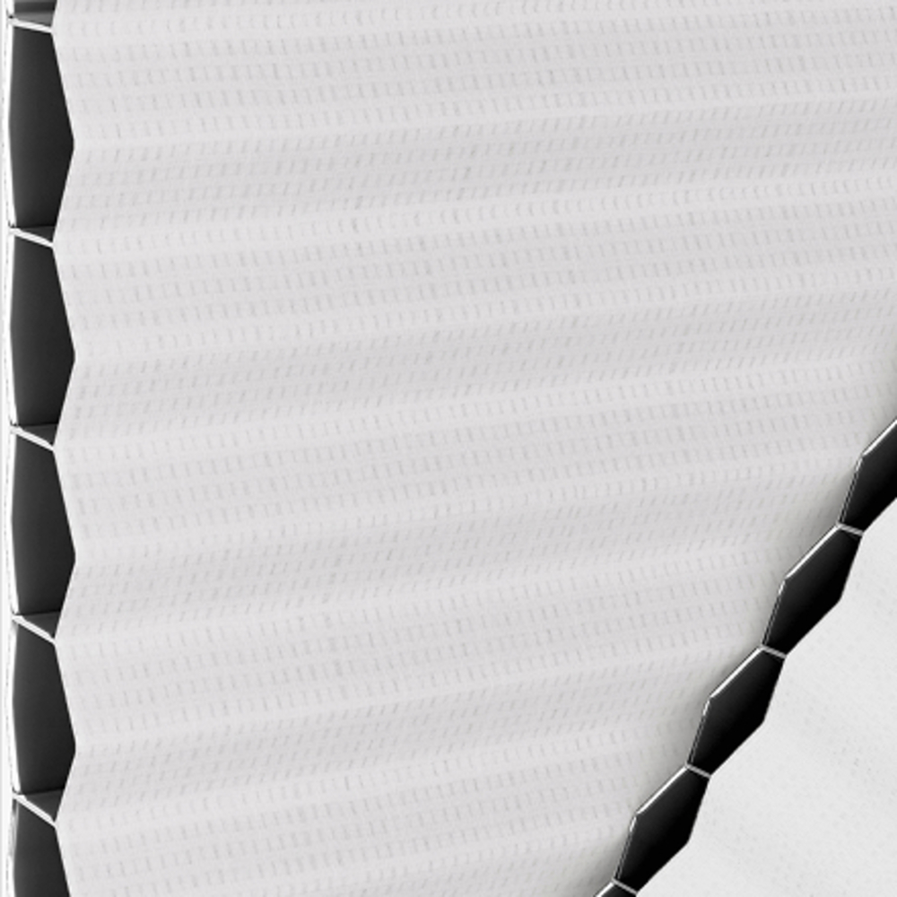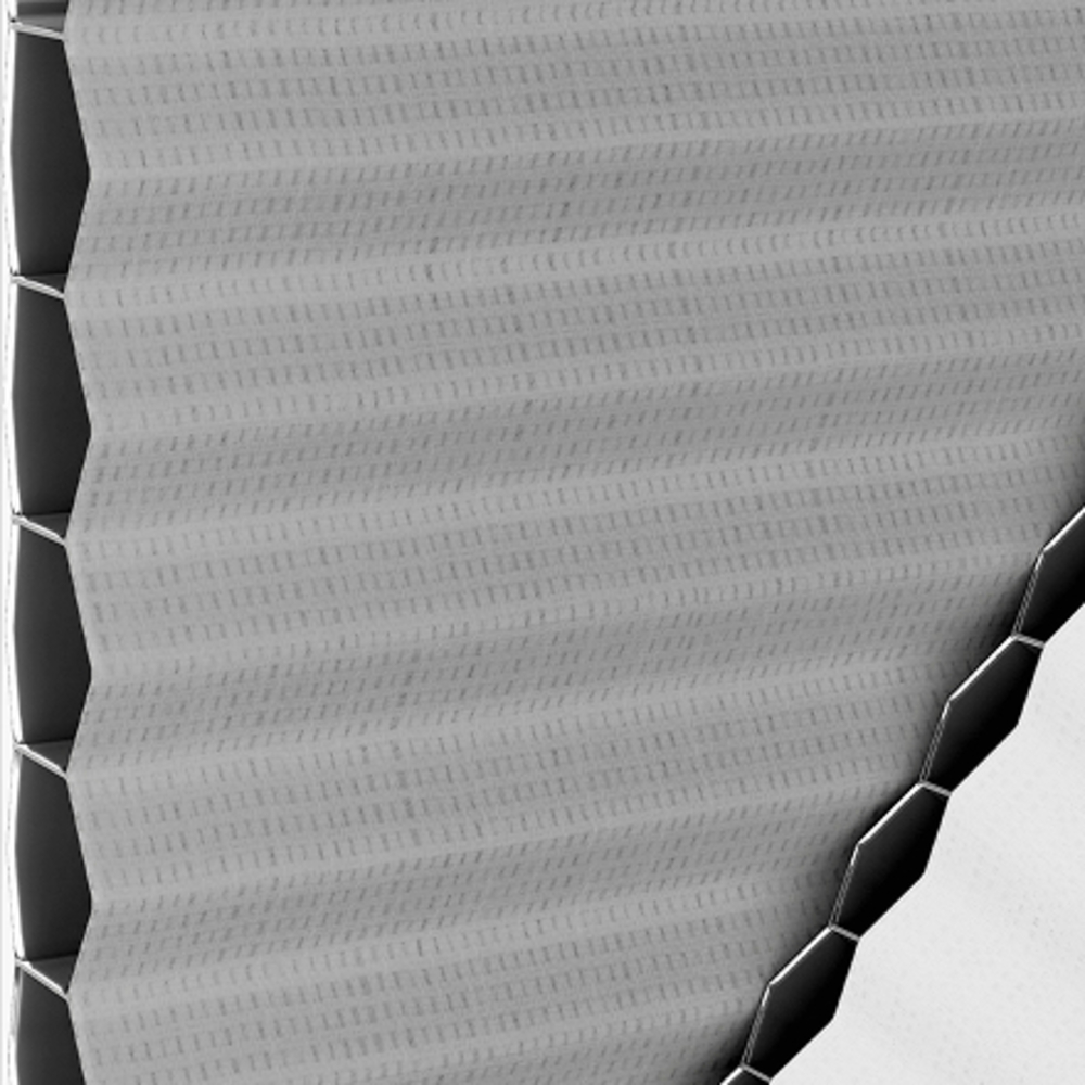 Vereinfacht gesagt, ist ein Wabenplissee ein sogenanntes Doppel-Plissee, da es gewissermaßen zwei hintereinander hängende Plisseestoffe sind. Selbstverständlich ist der Herstellungsprozess von Wabenplissee-Stoffen in Wirklichkeit um einiges komplexer (zu recht): so werden z.B. die beiden Plisseestoffe auch noch auf eine spezielle Weise aneinander geschweißt, wodurch die von der Seitenansicht erkennbare Wabenzellform entsteht. Weiter unterscheidet sich unter anderem auch der vordere “Plisseestoff” in Form und Farbe vom hinteren “Plisseestoff”. Ein Wabenplissee hat zwar vieles mit einem herkömmlichen Plissee gemeinsam, unterscheidet sich aber deutlich in der Leistung.