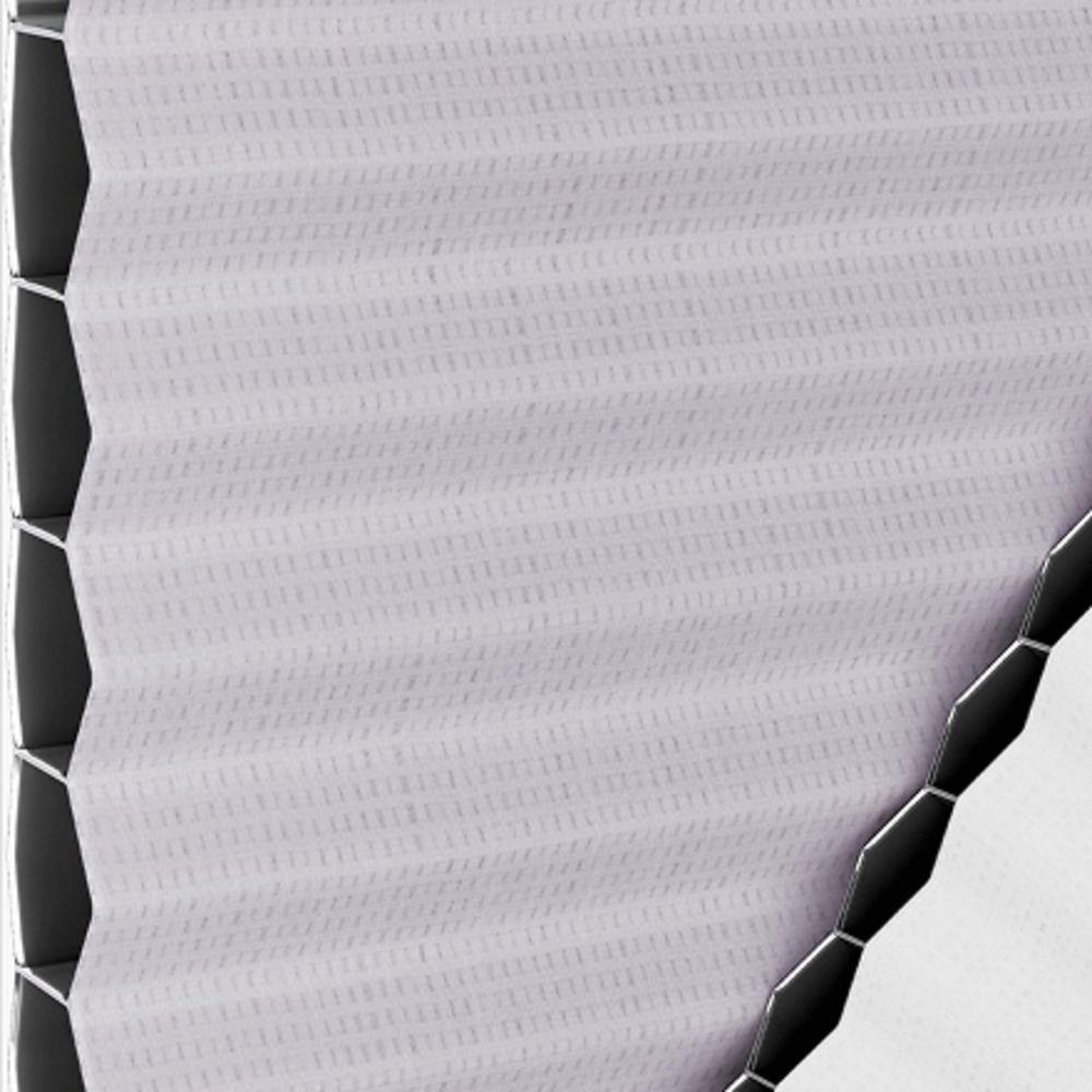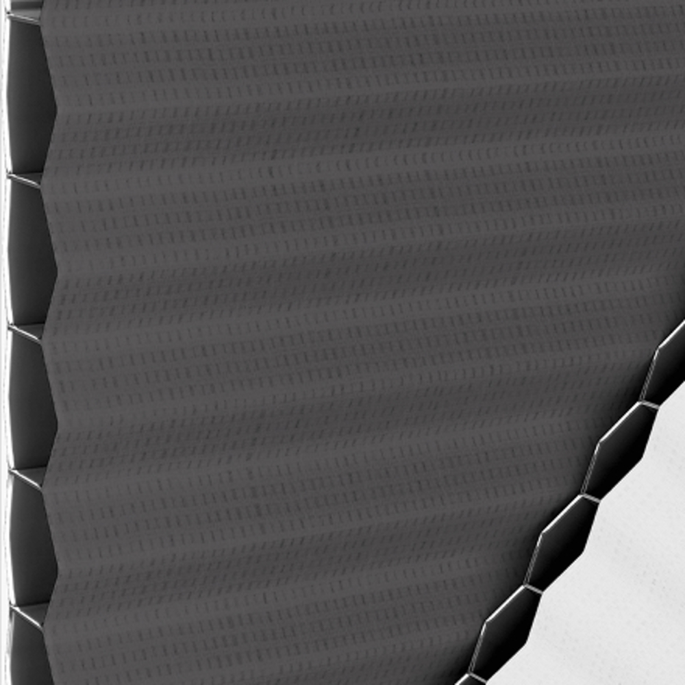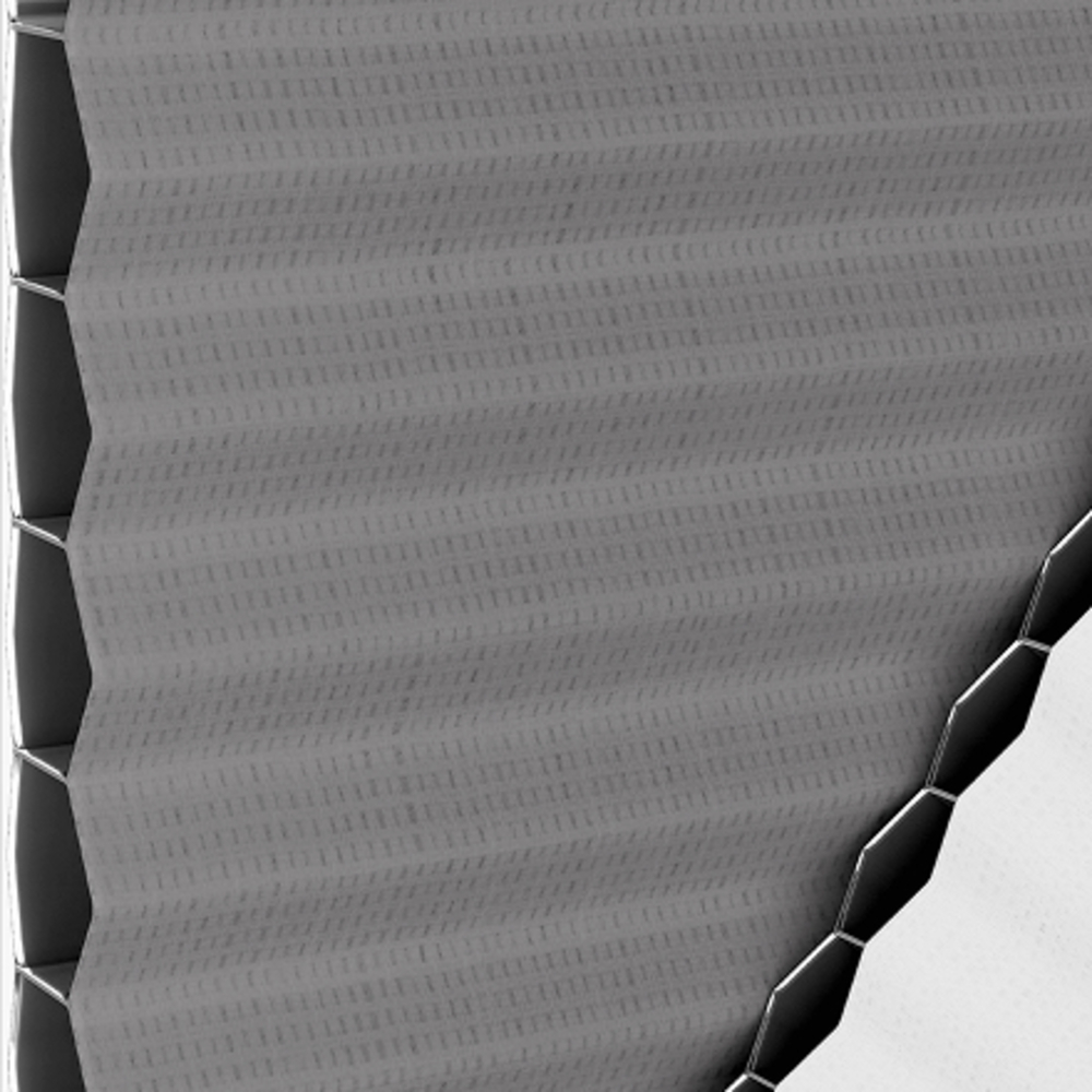 Unser Verdunkelungsplissee erreicht die maximal mögliche Raumabdunklung, die mit einem verspannten Plissee möglich ist. Es tritt kein Licht durch den Stoff und die Bohrlöcher verlaufen innerhalb der Zelle und sind nicht sichtbar. Licht kann nur durch Lichtspalte an den Seiten des Wabenplissees in den Raum treten.