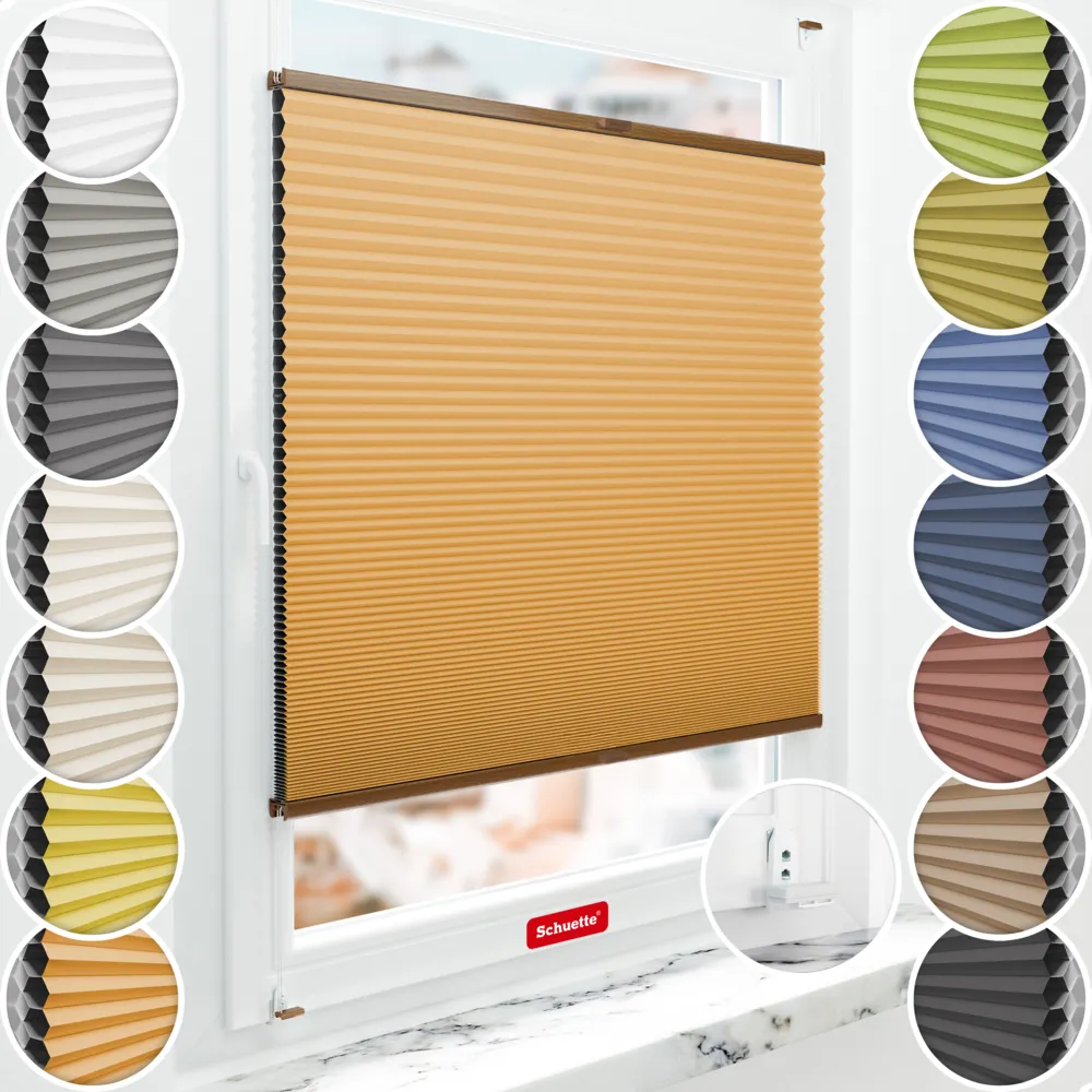 Schuette® Wabenplissee Verdunklungsplissee ohne Bohren nach Maß • Blackout x Honey: Citrus Glow (Orange) • Suprafix Klemmhalter "Double 2in1" • Profil: Eiche