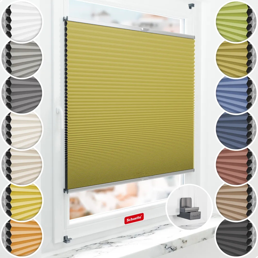 Schuette® Wabenplissee Verdunklungsplissee ohne Bohren nach Maß • Blackout x Honey: Olive Branch (Olivgrün) • Suprafix Klemmhalter "X" • Profil: Silber