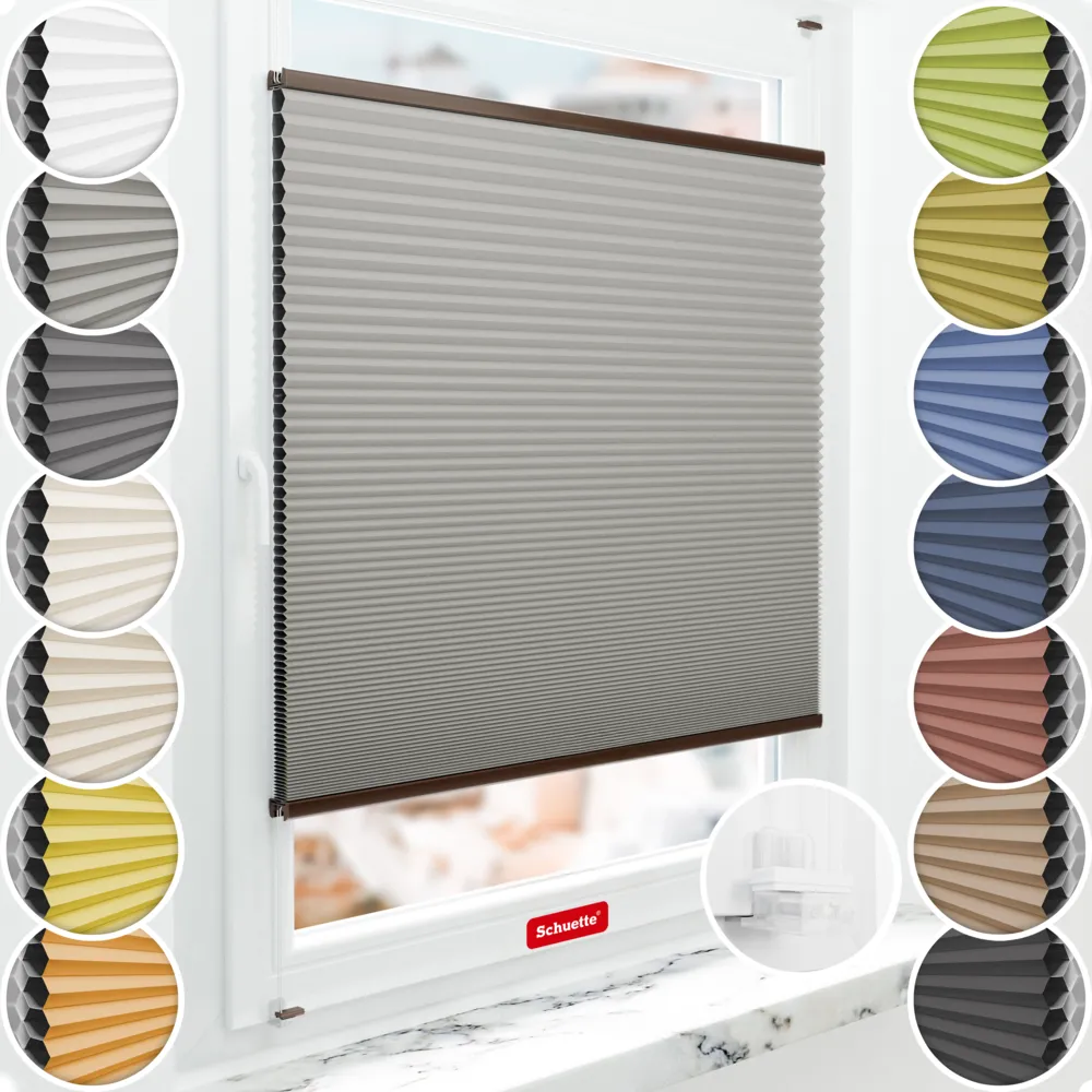 Schuette® Wabenplissee Verdunklungsplissee ohne Bohren nach Maß • Blackout x Honey: Silver Mist (Grau) • Suprafix Klemmhalter "Incognito X" • Profil: Braun