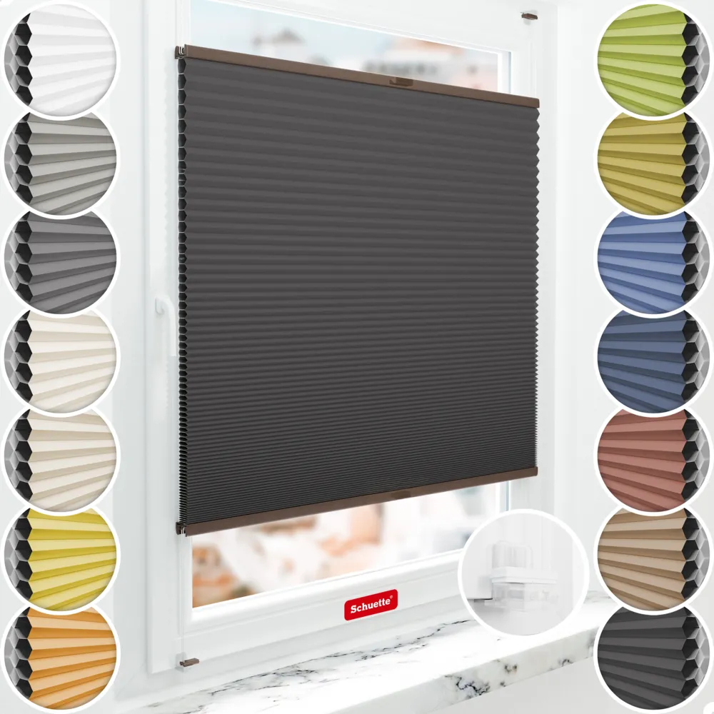 Schuette® Wabenplissee Verdunklungsplissee ohne Bohren nach Maß • Blackout x Honey: Starry Night (Schwarz) • Suprafix Klemmhalter "Incognito X" • Profil: Walnuss