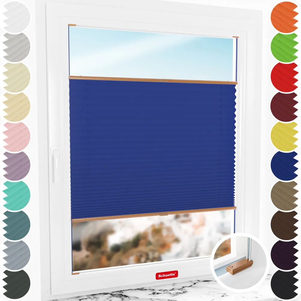 Schuette® Plissee mit Bohren nach Maß • Premium Kollektion: Deep Lagoon (Blau) • Suprafix Halterungen “Mit Bohren” • Profilfarbe: Eiche