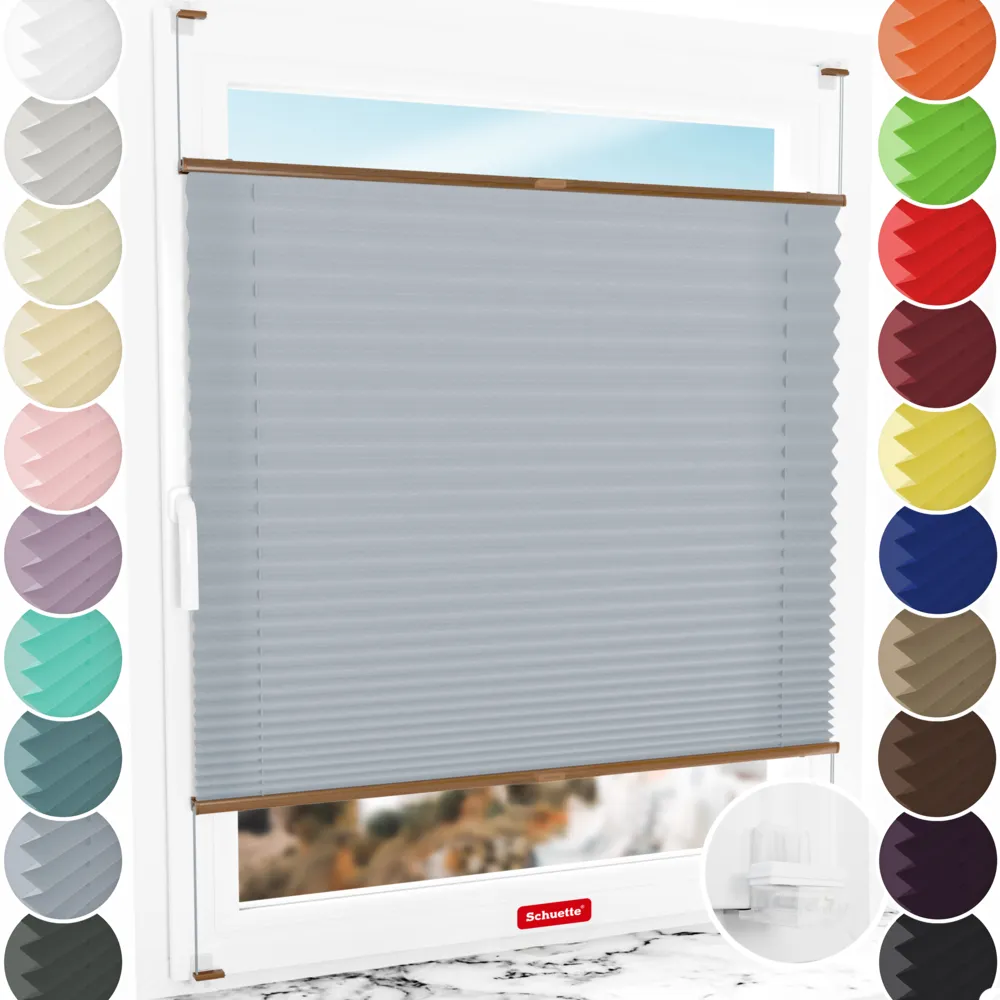 Schuette® Plissee ohne Bohren nach Maß • Suprafix Klemmhalter “Incognito X" • Premium Kollektion: Silver Sonata (Grau) • Profilfarbe: Eiche